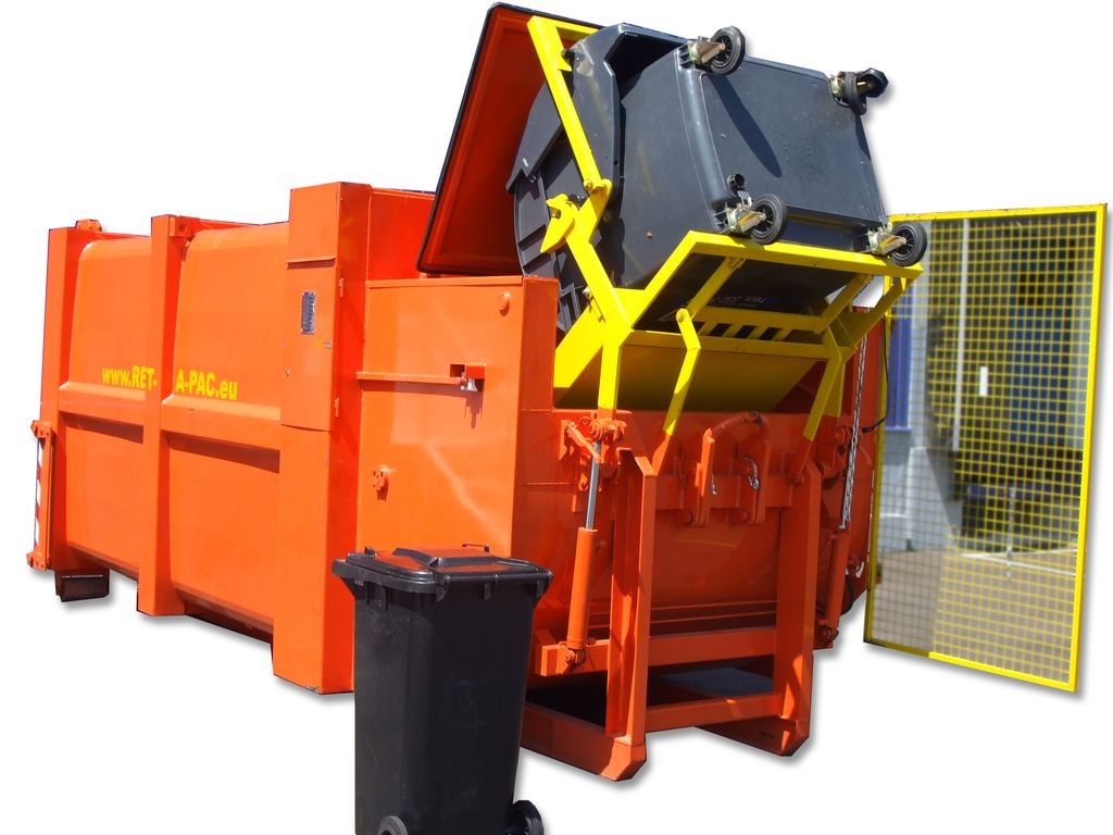 Mobile press container for dry waste with a chamber length from 910 to 2050 mm and a corresponding cycle capacity of 1.3 - 2.46 m3. Container volume 6-24 m3. To facilitate emptying, we offer a moving roof.